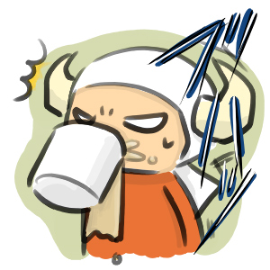 ついさっきの出来事。 コーヒー(砂糖牛乳入り)を飲もうとした時のこと、 ぼたぼたぼたぼたぼたぼたぼたぼたぼたぼたぼたぼた・・・ 盛大に溢しました。 もう・・・トシなんだろうか。 悲しくなったが面白くもあったので、ザッと描いてみました。 ナント・・・最短記録、五分。 ぎゃっほいです。 |