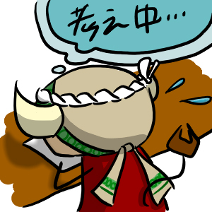 牛ボンです。 アオザイなので、色も青っぽく。(別名:青い材料) ・・・・・・ ・・・・・・・・・ ・・・っまんまだなっ!!!! 特技はもちろん・・・・自爆死。(自分の進路に爆弾を置いて退路を断ち爆死する事を言います。) ええ、自分はそうやって負けます。今までの最高記録は、にじゅぅ・・・3連敗だったろうか。弱いCOMにも勝てません。 |