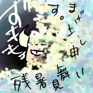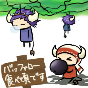 実験は成功した後、失敗しました。今度は二枚か・・・?どうも、アオザイです。 快適な睡眠までの道のりは険しいです。 バッファロー・・・そんな銘柄の葡萄があると鳴門サンから聞いて浮かんだ、これ。 向こうも同じ様な想像をしてしまったらしい。 いや、もっと可愛らしい想像だったと思うけども・・・。 折角送った残暑見舞いを・・・奴は「変な葉書」と言いやがりました。 否定は出来ないけども。 |